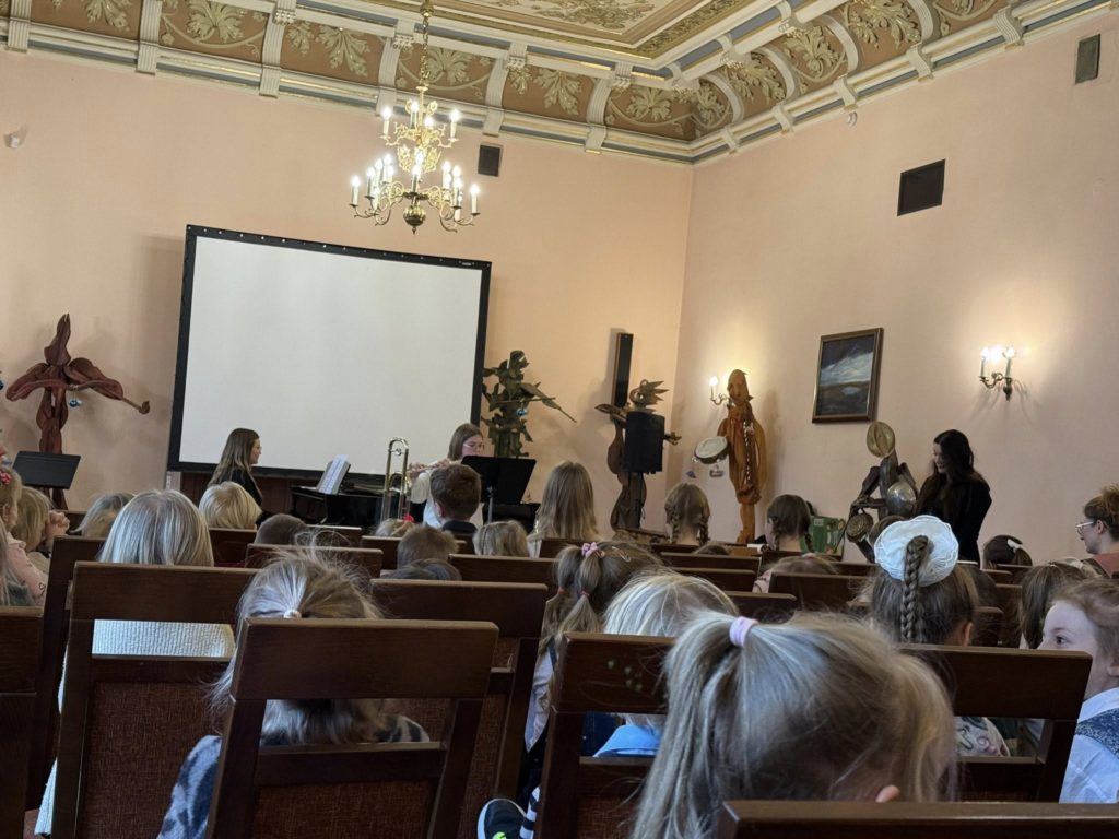 Dzieci z ogromnym zainteresowaniem obejrzały występ starszych uczniów, którzy grali na różnych instrumentach. Poznały ich brzmienie i nazwy – to była prawdziwa muzyczna przygoda!
